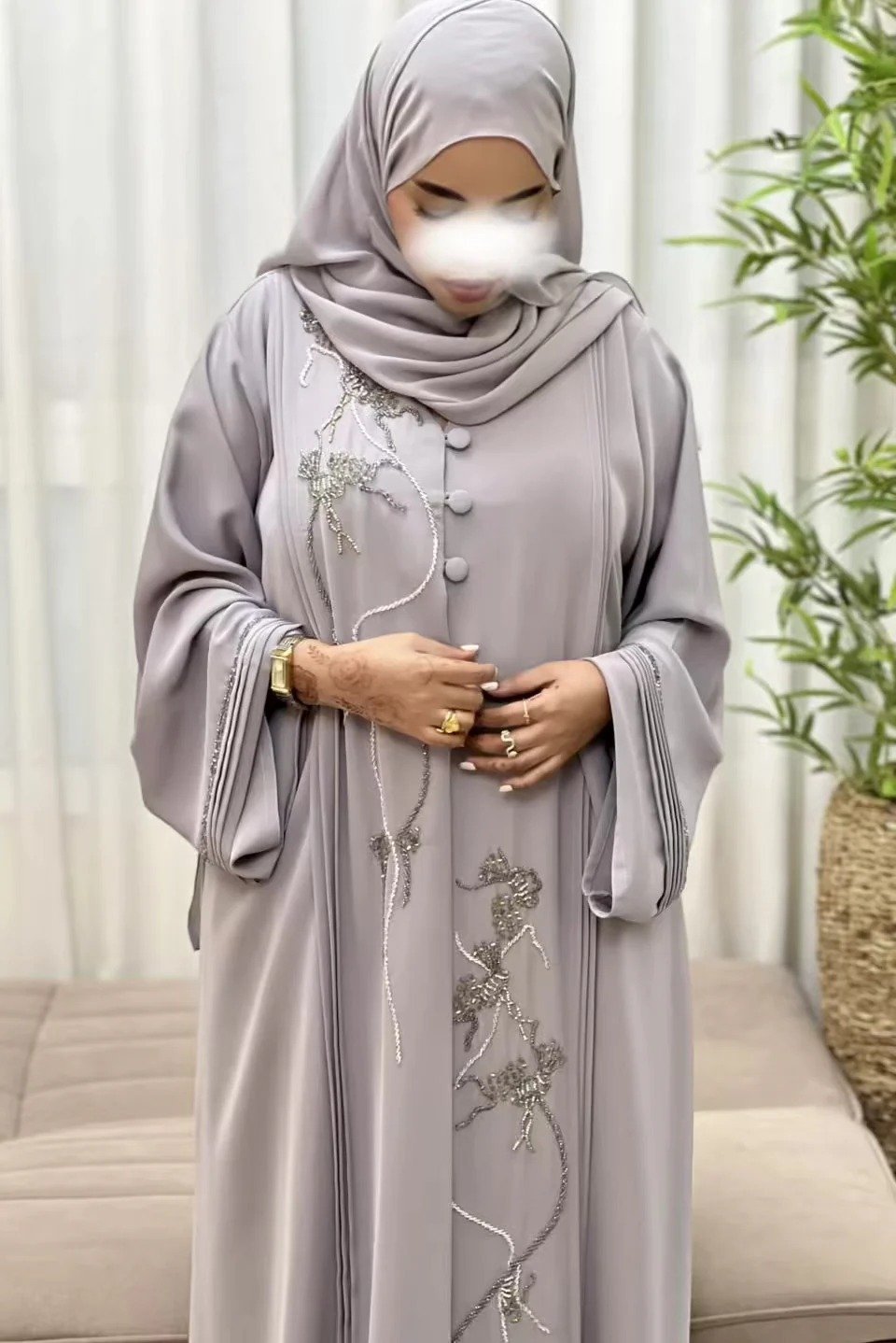 The Azrah Luxe Abaya combines bold elegance with effortless style. Made from premium Korean Nida fabric, it features a relaxed, flowing fit, full sleeves, and a refined three-button neckline. Handcrafted in Dubai, it comes with a matching chiffon sheila for a complete look.